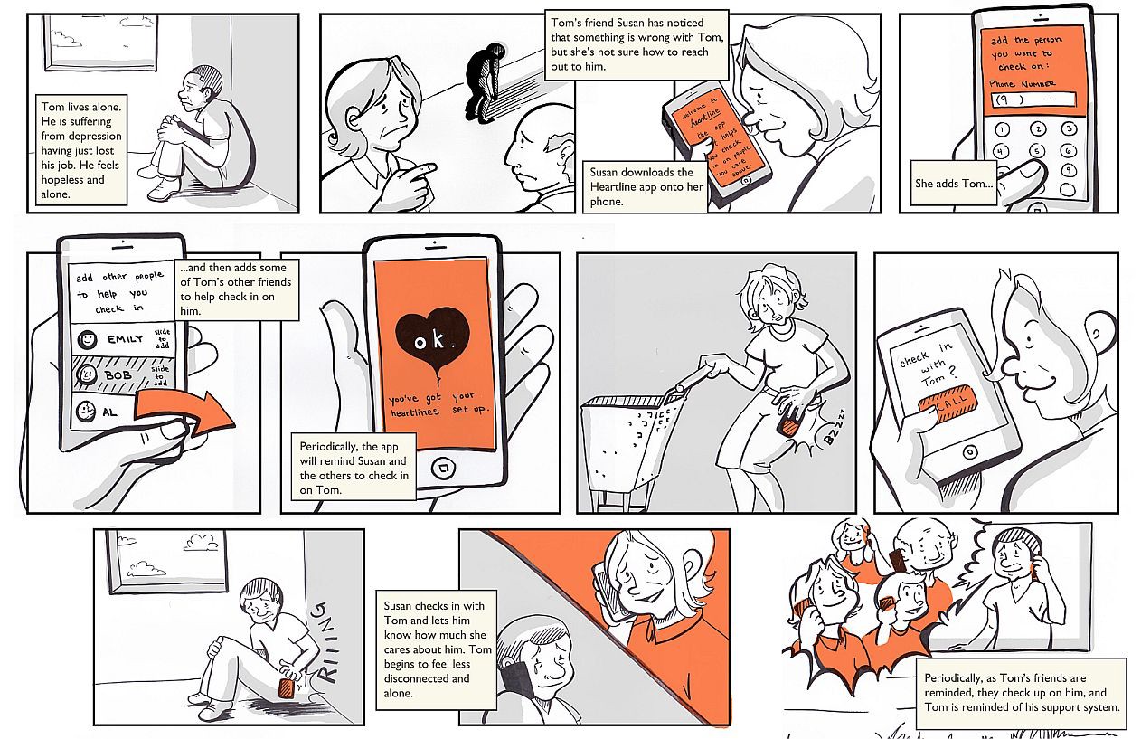 Storyboards are illustrations that represent shots that ultimately represent a story. In UX this stroy illustrates the series of actions that users need to take while using the product. Translating functionalities into real-life situations, helps designers create empathy with the user.